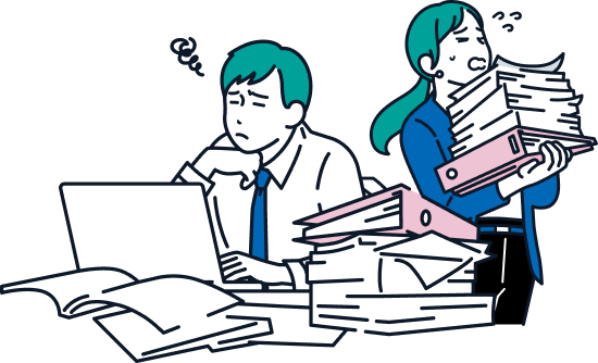 記録様式の版管理、空記録書の配布、記録の作成、レビュー・承認、回収、ファイリングに膨大な人と時間がかかり、生産性が低下。